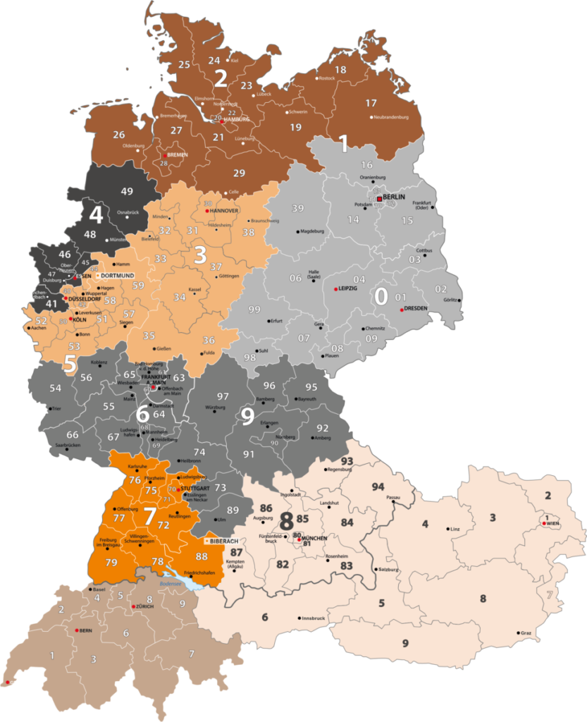 PLZ: 01-09, 10-16, 17-19, 39, 98, 99